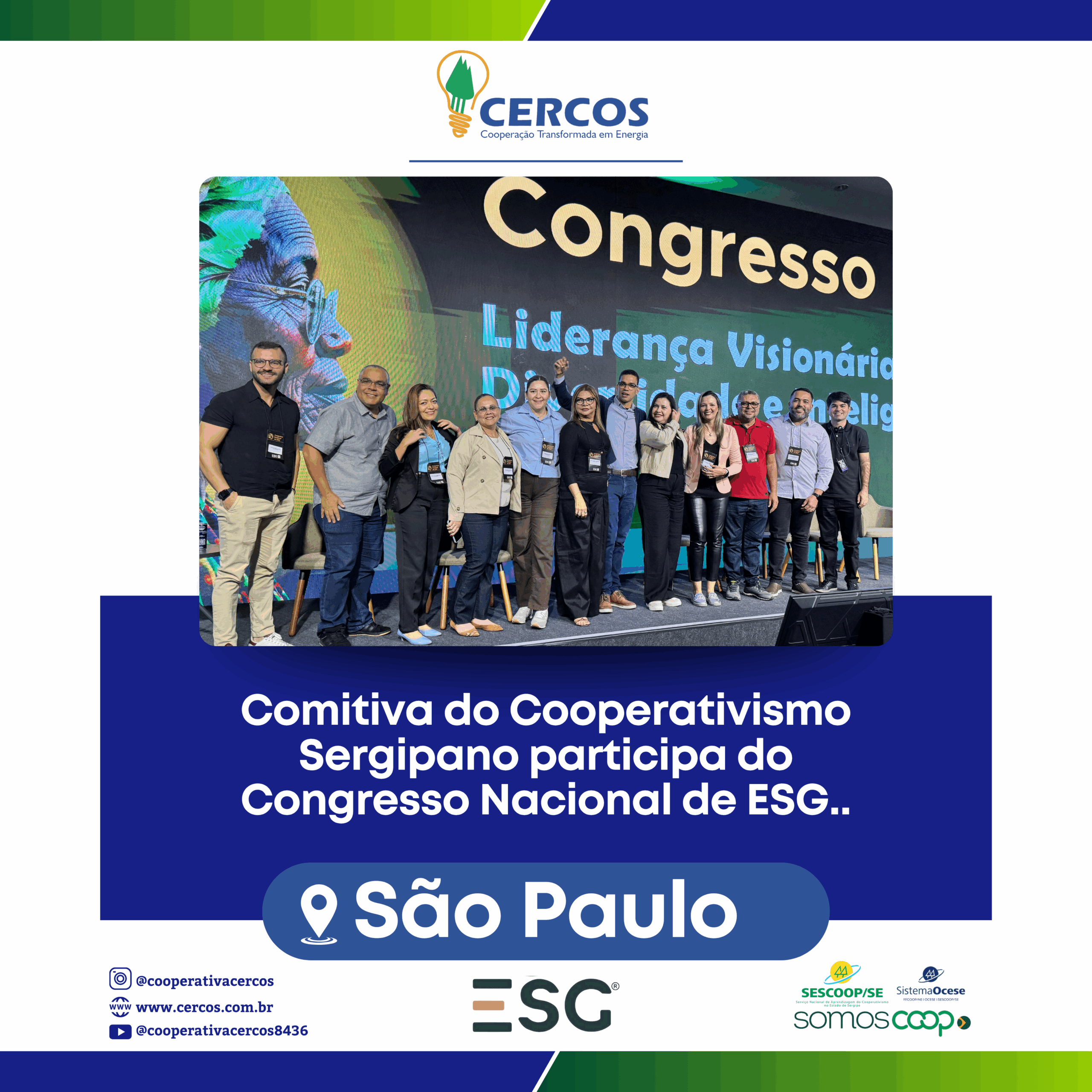 A Comitiva do Cooperativismo Sergipano está marcando presença em São Paulo no Congresso Nacional de ESG, e claro, a CERCOS também está presente!