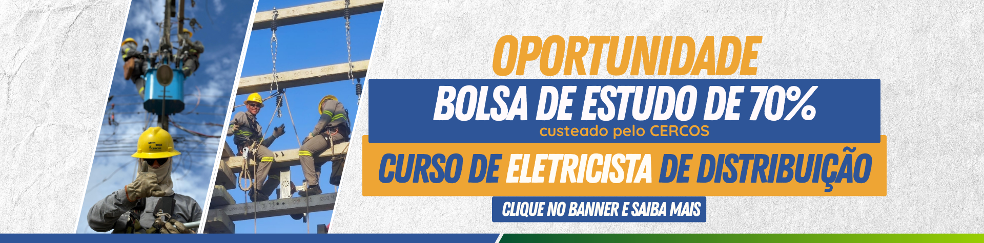 A CERCOS, reafirmando seu compromisso com o desenvolvimento social e a qualificação profissional, está oferecendo 4 (quatro) bolsas de estudo para o Curso de Eletricista de Distribuição.